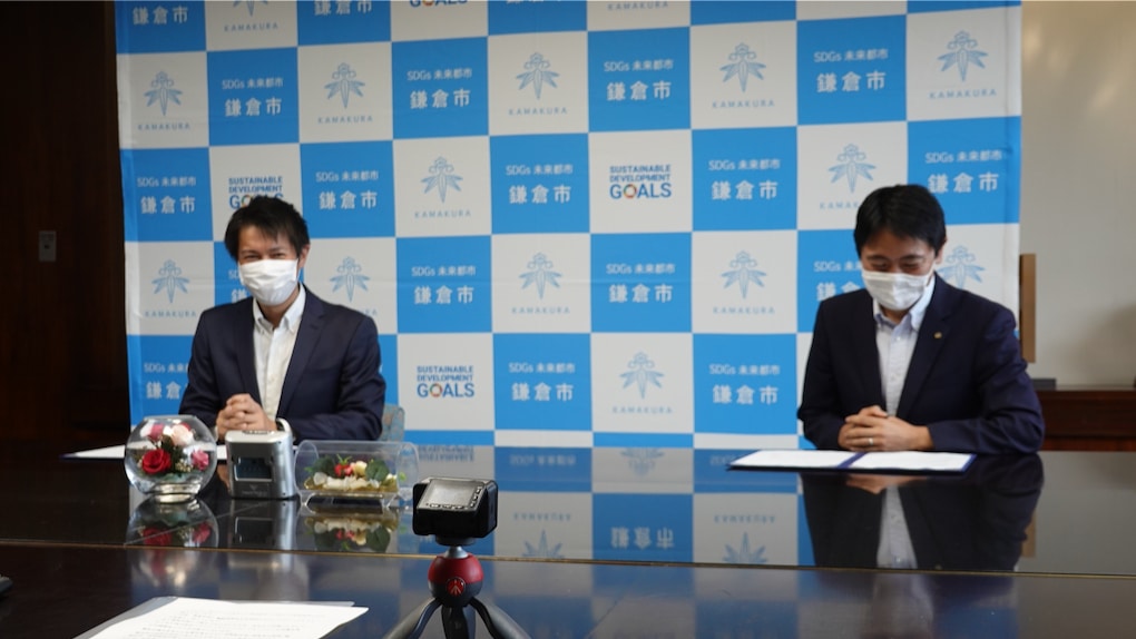 (左から株式会社FunMake代表取締役 市位謙太/鎌倉市市長 松尾崇)