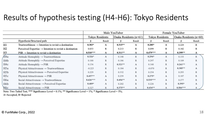 しかし、インフルエンサーとしてのPSRに及ぼす影響については、大阪と東京では異なり、回答者の居住地によっても異なることもわかりました。