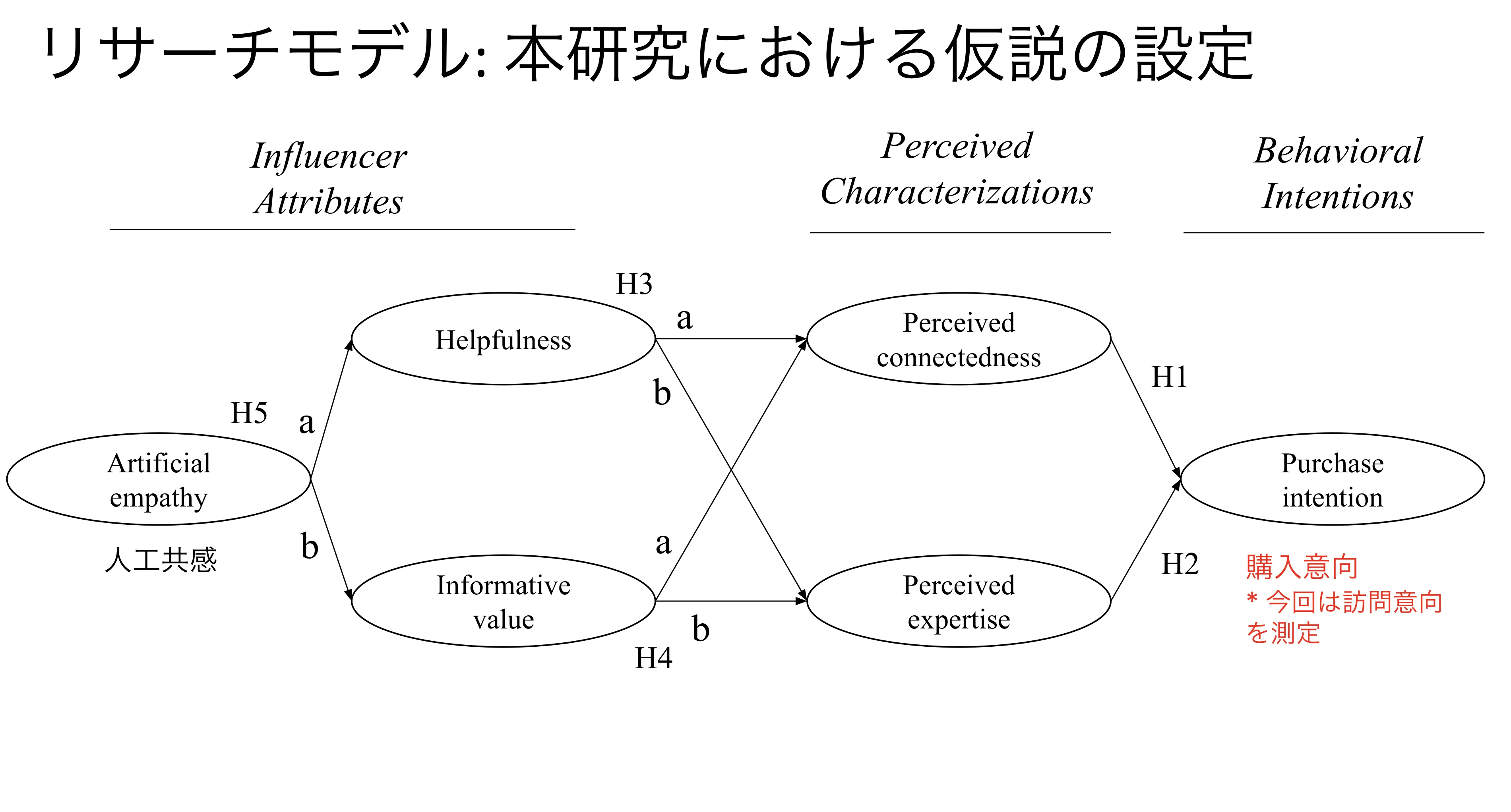 本研究では、構造方程式モデリング(SEM:Structural Equation Modeling)を用いて、デジタルアバターと生身の人間の差異、およびデジタルアバターの人間的な仕草とマーケティング効果の関連性を解析します。