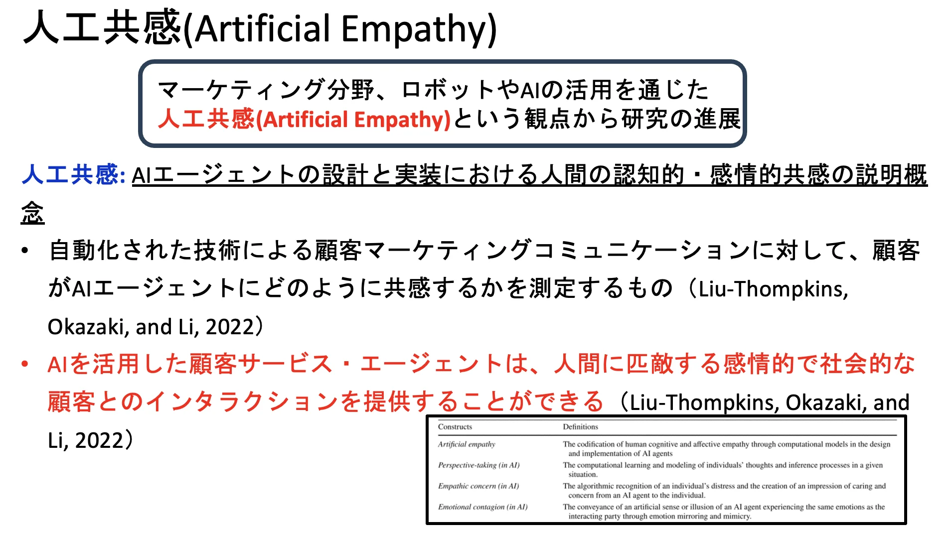 近年、マーケティング分野でのロボットや生成AI等の自動化技術の活用が注目されています。しかし、これら人工物に対する共感を踏まえたマーケティング効果は十分に検証されていません。