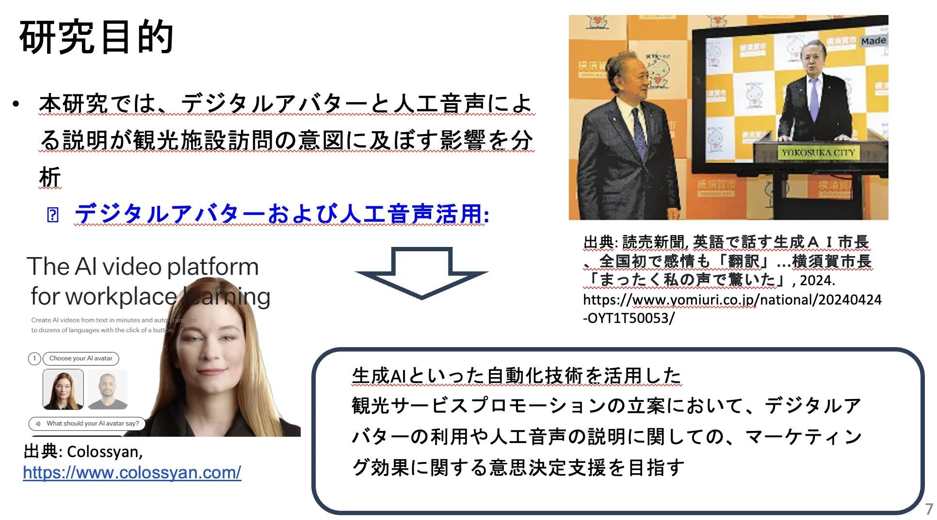 この研究は、観光地経営において生成AIとデジタルアバターの活用がもたらす新たな可能性を探る重要な試みです。