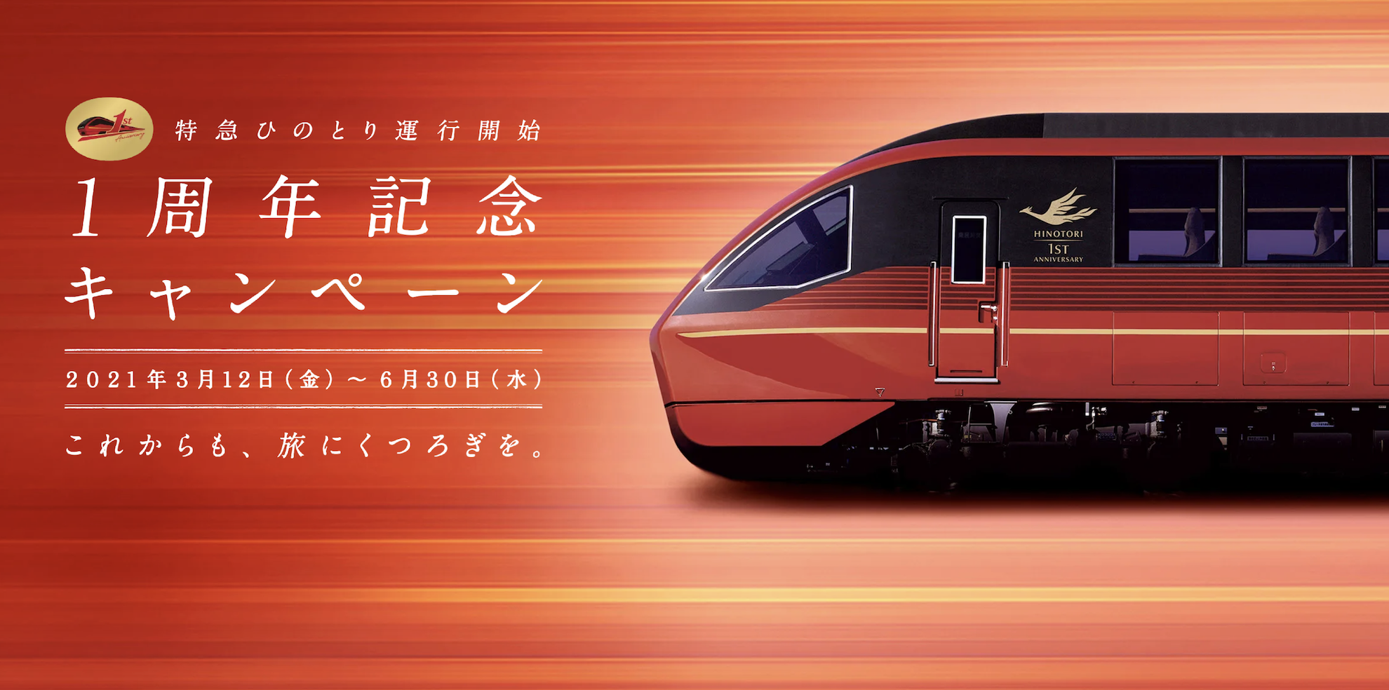 特急ひのとり運行開始1周年記念キャンペーンサイト: https://www.kintetsu.co.jp/senden/hinotori/1stcampaign/